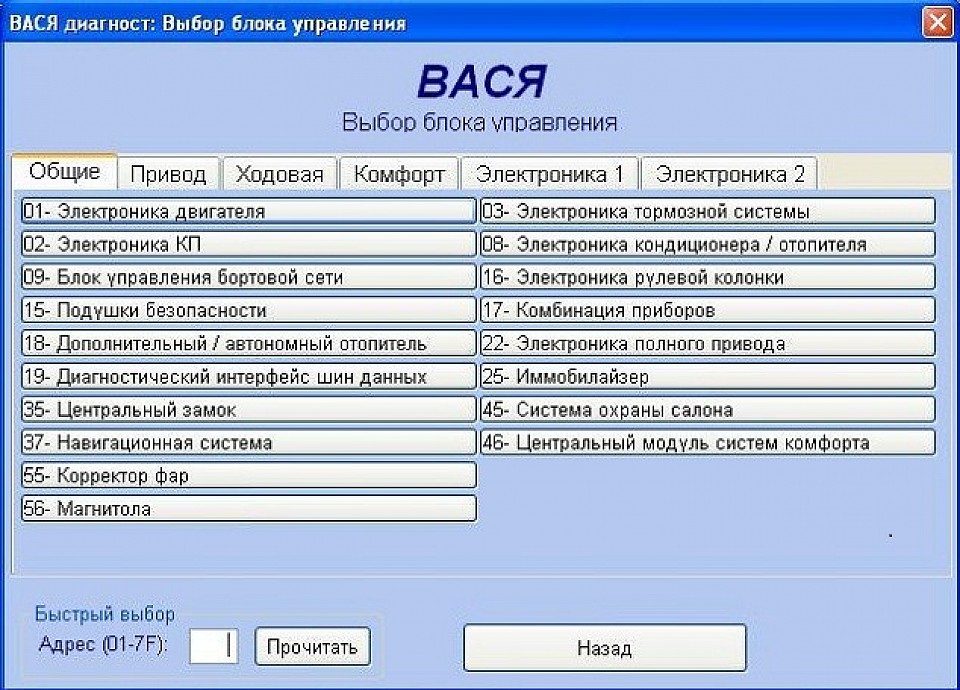 Програма для комп’ютерної діагностики автомобілів VAG. Підходить для роботи з автомобілями, оснащеними протоколами OBD-II / K-Line (переважно до 2004 року).